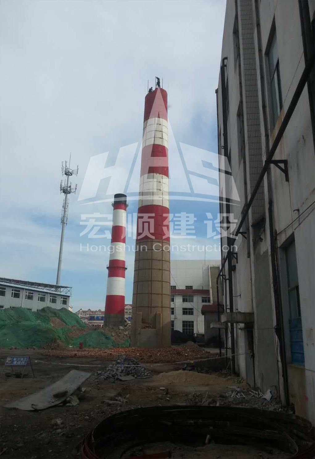 (煙囪拆除施工中)